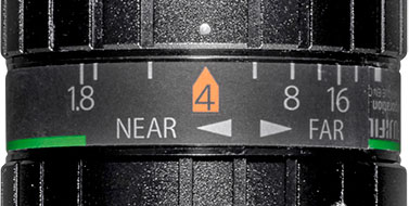 ● 在客户使用频度较高的光圈值F4及拍摄距离50cm的情况下,将光圈调整至镜头镜筒部上标记的橘色F4指标,就能实现图像全范围的、高于2.1μm像素间距(相当于2/3型感应器・1200万像素)的高解像性。